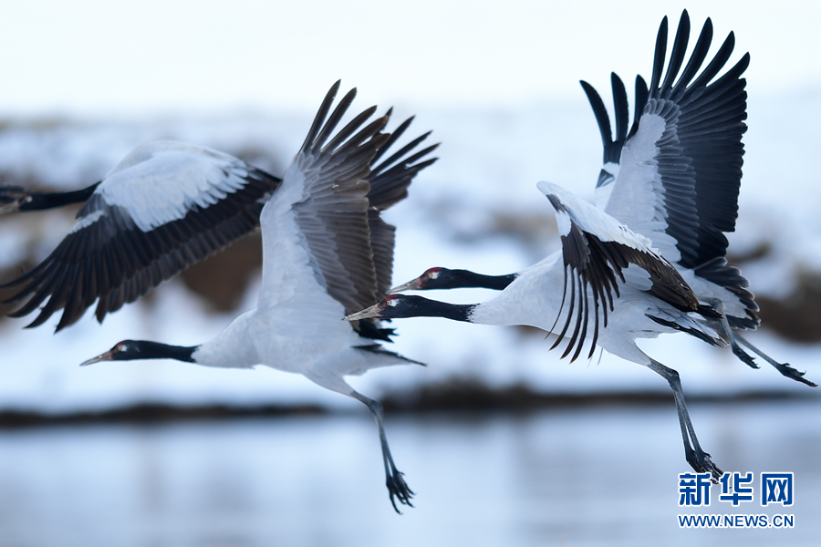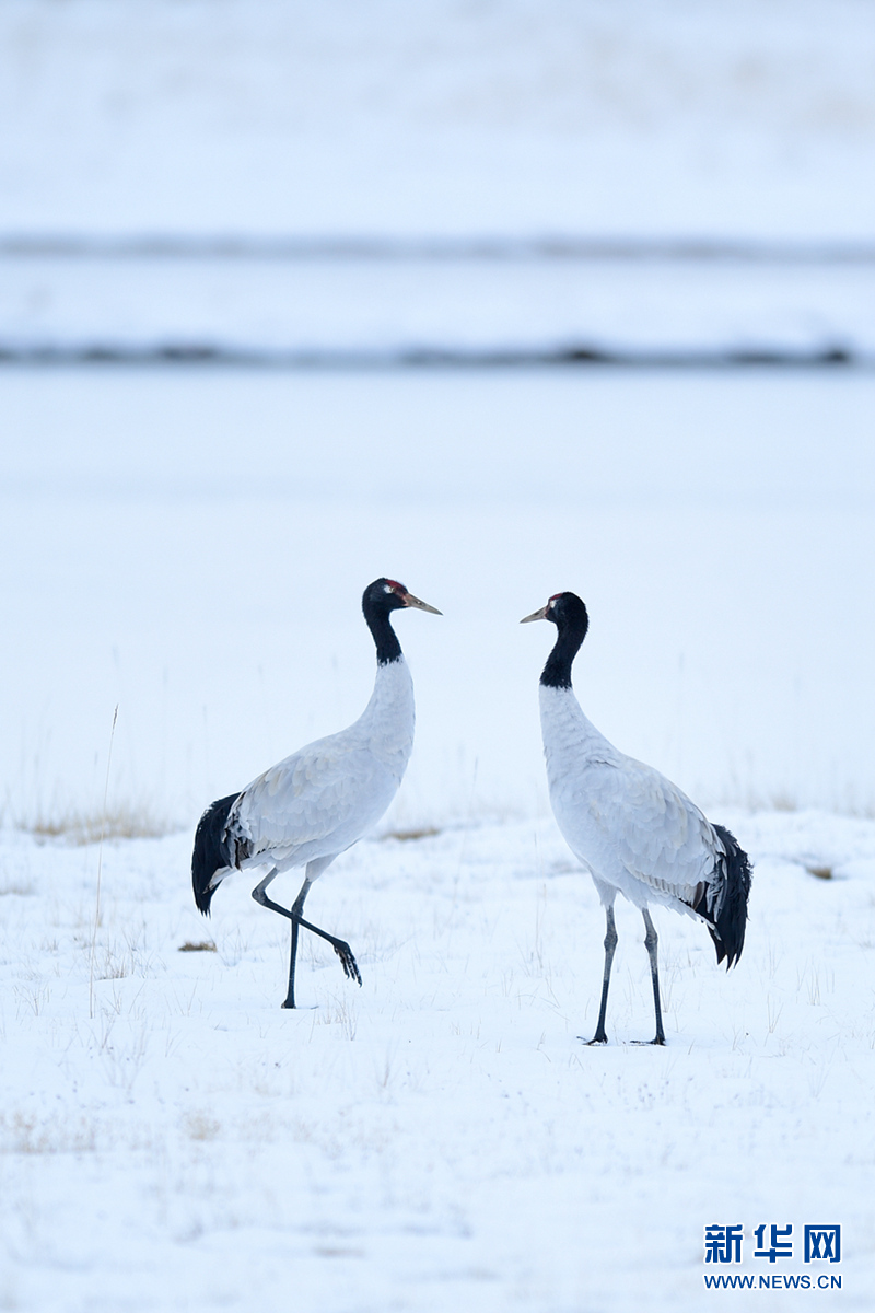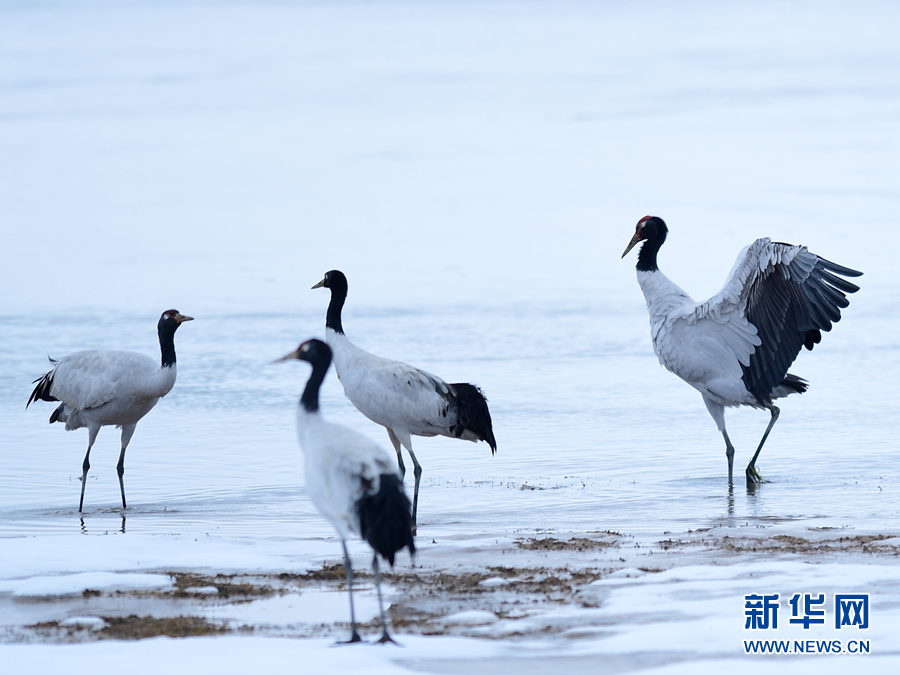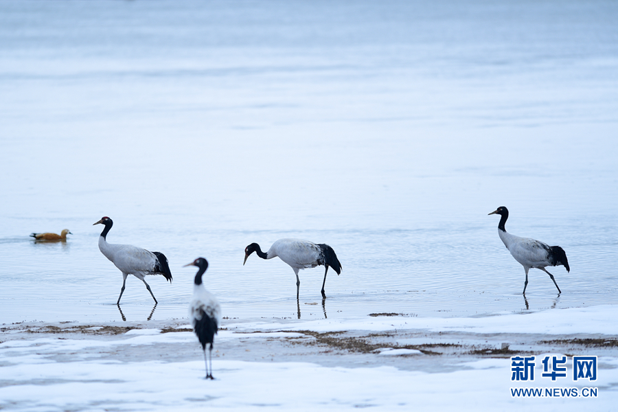 10月21日在三江源國家公園黃河源園區(qū)內(nèi)拍攝的黑頸鶴。新華社記者 張龍 攝