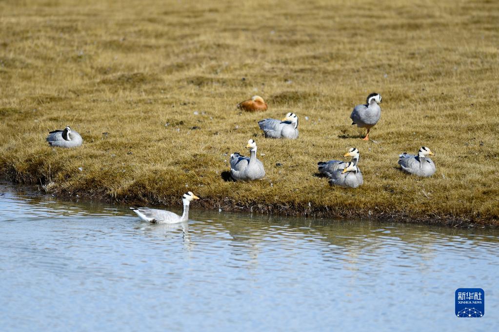 這是10月19日在三江源國家公園黃河源園區內拍攝的一群斑頭雁。新華社記者 李占軼 攝