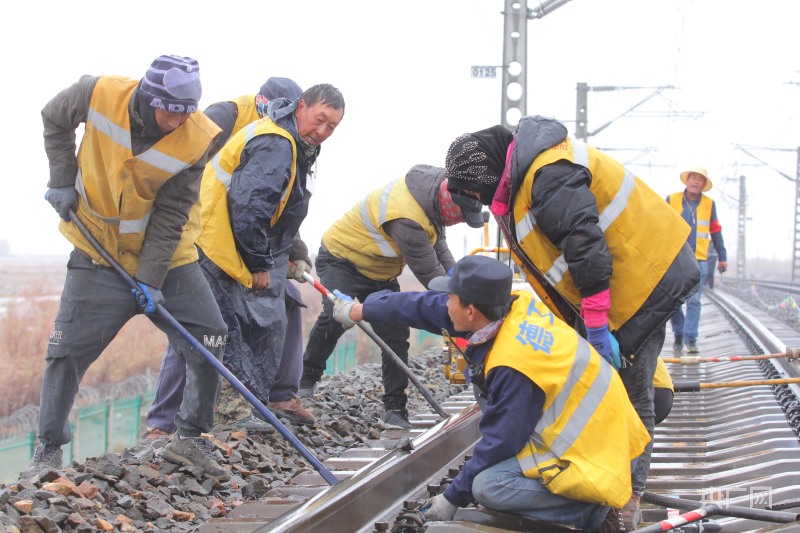 深秋時節,在青海省海西蒙古族藏族自治州,巴音河畔的德令哈市雨雪飄揚。在鄰近德令哈站的鐵路區間上,170余人正在火熱工作中。