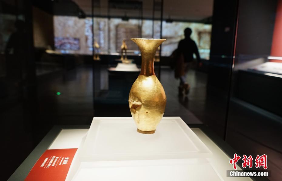 11月29日,位于青海省西寧市的青海省博物館展出從該省海西州都蘭縣熱水墓群出土的金胡瓶。當日,青海省博物館經一年半升級改造后開館并舉辦“1+3”主題展覽,160件藏品首次亮相。該展覽以青海歷史文物為主,青海非物質文化遺產、考古成果、百年革命文物為輔,多角度展現地域歷史及民族文化。據了解,升級后的博物館上展文物1331件(套)/2405件,其中一級文物191件,珍貴文物248件(套),上展文物體量為青藏高原最大。 中新社記者 馬銘言 攝