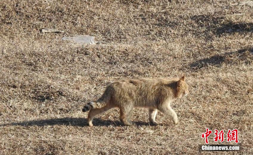 圖為大通北川河源區國家級自然保護區管理局寶庫管護中心工作人員拍攝到的荒漠貓。 大通北川河源區國家級自然保護區管理局供圖