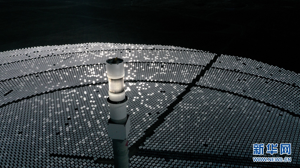 位于青海省海南藏族自治州共和縣光伏產業園內一處塔式光熱發電項目(無人機照片)。新華社記者 張宏祥 攝