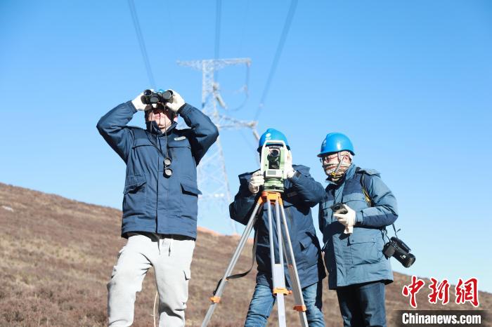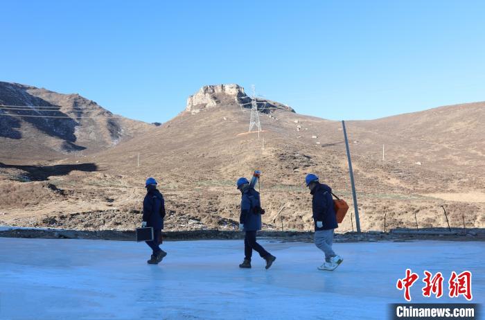 圖為國網青海檢修公司輸電運檢人員李承鴻、楊濤、梁威對750千伏拉寧線開展春節前特巡。朱毅然 攝