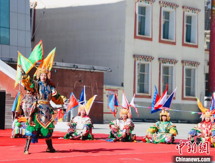 為保護和傳承文化遺產,弘揚優秀傳統文化,國家級非物質文化遺產代表性項目青海馬背藏戲《丹瑪之子》14日在青海省果洛州格薩爾文化廣場展演。