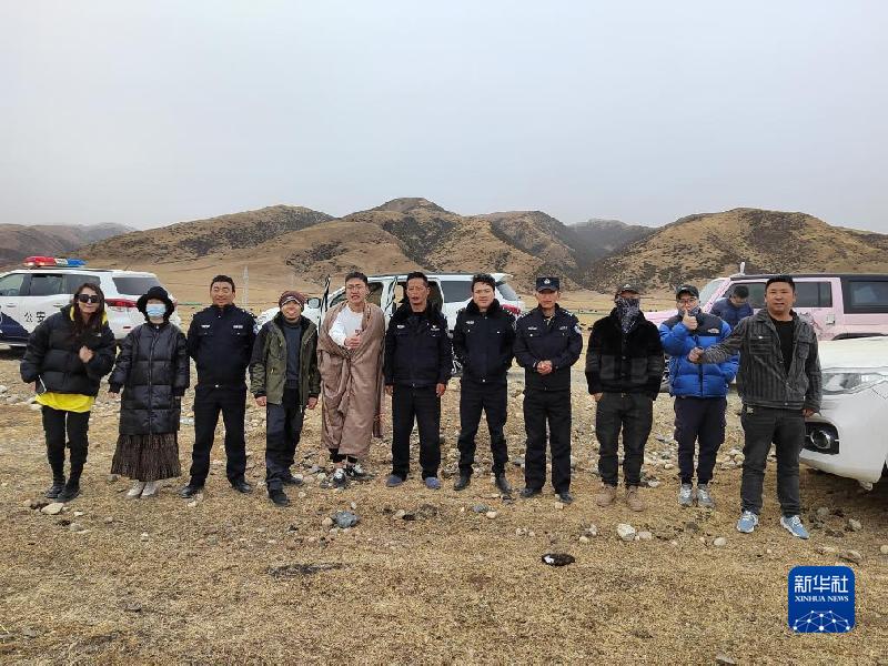 被救援的自駕游游客與民輔警們合影。禾尼派出所供圖