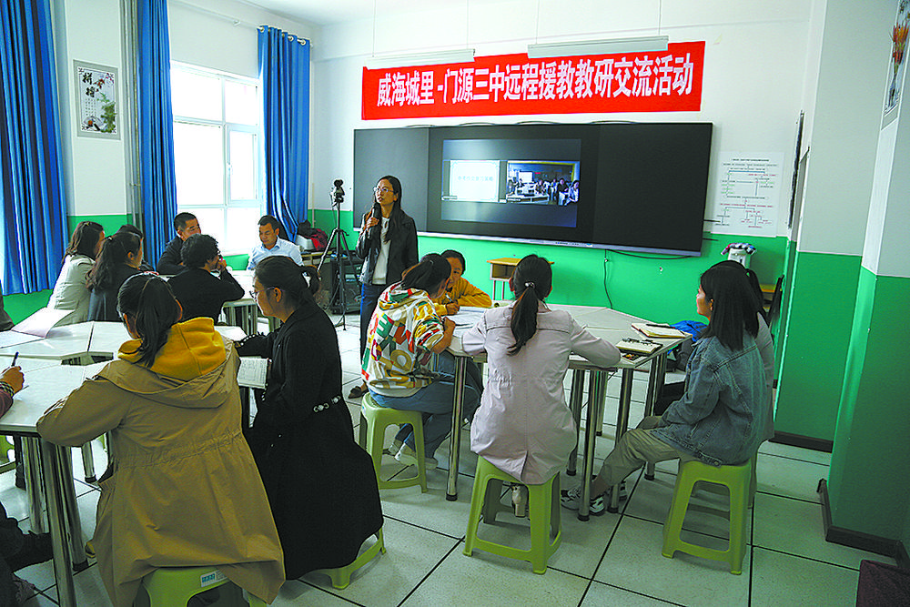 2019年9月,山東援青在門源縣啟動“威?!T源遠(yuǎn)程智慧援教工程”試點(diǎn)。目前,山東援青累計(jì)投入資金870余萬元,基本實(shí)現(xiàn)了山東四市對海北四縣中小學(xué)遠(yuǎn)程智慧援教全覆蓋,推動山東與海北結(jié)對學(xué)校老師之間的同步備課、同步聽課、同步評課、同步研課,先后開展活動800余次,兩地6000多名教師參與,山東老師不到高原也能參與援青支教,使海北學(xué)子不離家鄉(xiāng)也能享受優(yōu)質(zhì)教育。