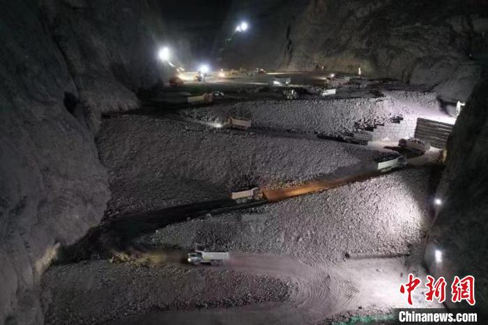 圖為瑪爾擋水電站大壩填筑夜間施工現場。(資料圖) 國能瑪爾擋公司 供圖
