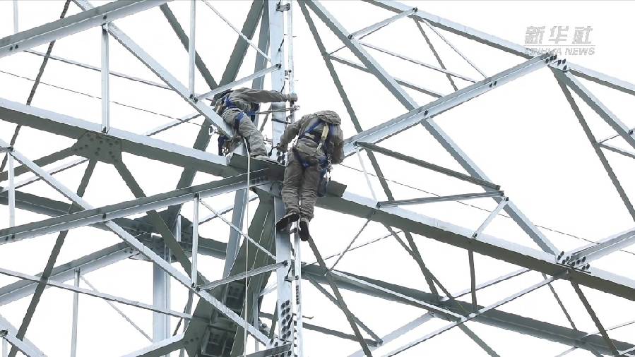 圖為國網(wǎng)青海超高壓公司輸電專業(yè)人員正在開展750千伏青塔I線14號鐵塔消缺工作。 董慶芳 攝