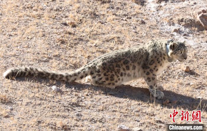 圖為佩戴衛星追蹤項圈的雪豹被放歸。祁連山國家公園青海省管理局供圖