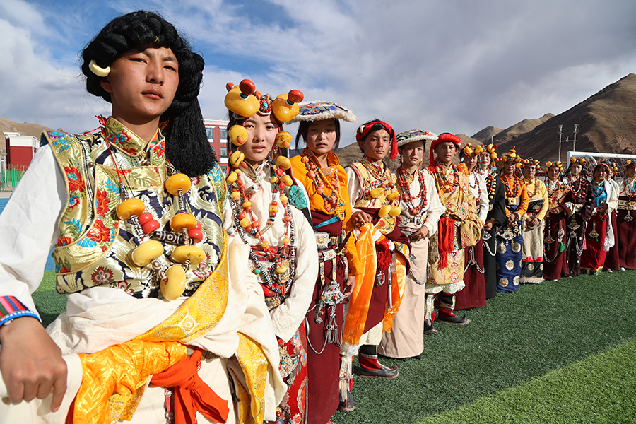5月6日,青海師范大學附屬玉樹實驗學校舉行“五四運動103周年紀念大會暨‘華美青春耀百年’”文化展示活動,千余名師生身著華麗的民族服飾共同慶祝這一青年人的節日。
