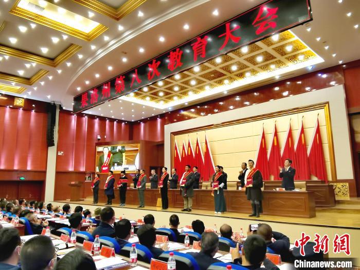 圖為青海省果洛州表彰教育系統(tǒng)先進代表。張?zhí)砀?攝