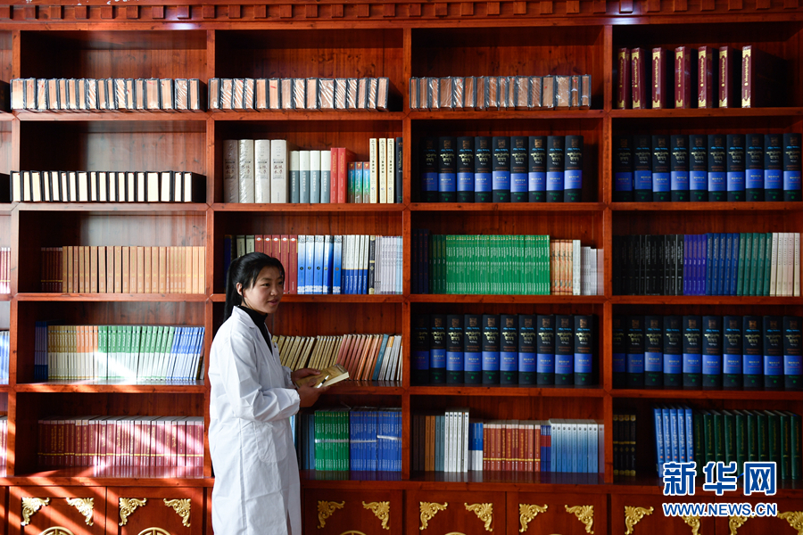 在果洛藏族自治州職業(yè)技術學校,2020級藏醫(yī)醫(yī)療與藏藥專業(yè)學生德吉在借閱書籍。(資料圖)新華社記者 張龍 攝