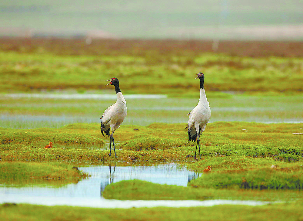 黑頸鶴頻繁“駐足”中國(guó)“鹽湖城”