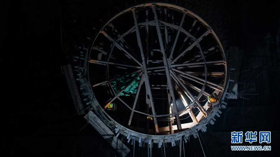 瑪爾擋公司工作人員在水電站地下廠房建設現場查看工程進度。新華網 潘彬彬 攝