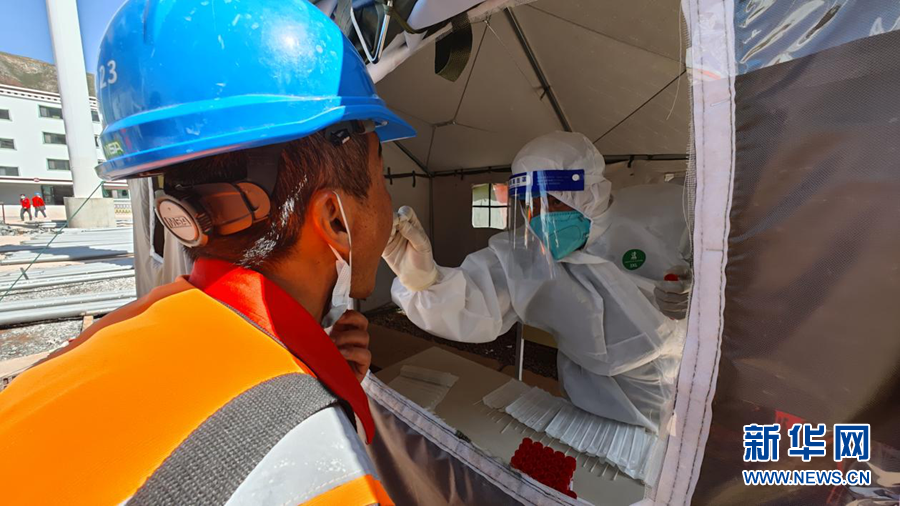 “現在是工程建設的‘黃金期’,為確保項目建設進度,我們聯合拉加鎮中心衛生院在營區、工區建立長期核酸檢測點,為工區所有單位人員開展常態化核酸檢測?!秉S林成說。