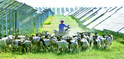“與其花錢雇人來割草,還不如讓牧民來放羊?!敝烀鞒苫貞洰敃r的靈機一動。園區(qū)邀請周邊牧民進入光電園區(qū)養(yǎng)起“光伏羊”,“我們免費修建了4座羊圈,讓‘光伏羊倌’零成本干起老本行?!?/p>