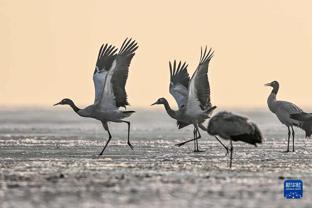 “只有人鳥共生,才能長遠發展”,已成為眾多黑頸鶴保護地的共同理念。在甘肅尕海,周邊禁止采砂、退出采礦、禁牧休牧,湖泊告別三度干涸歷史,水域面積不斷擴大,黑頸鶴回歸翱翔;在云南大包山,當地實施棲息地生態修復項目,恢復濕地超過9000畝,為黑頸鶴預留更多棲息生態空間。