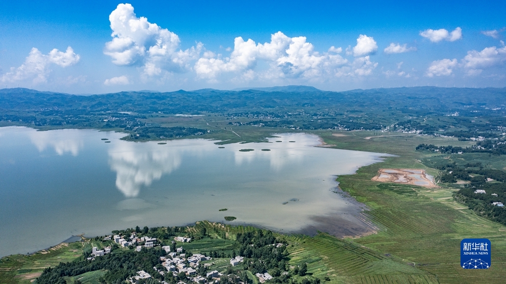 貴州草海國家級自然保護區,退耕還湖成效明晰可見(2022年7月8日攝,無人機照片)。新華社記者 陶亮 攝