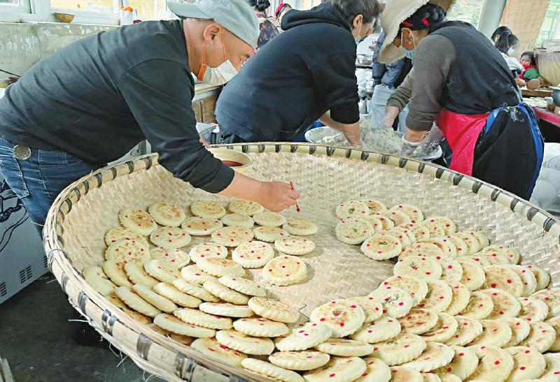 中秋節(jié)前,甘孜州道孚縣群眾及愛心企業(yè),自發(fā)組織制作當?shù)靥赜胁厥皆嘛灮x饃送到瀘定受災群眾手中。
