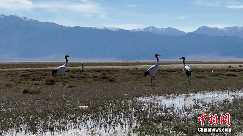 圖為黑頸鶴群在互相觀望。烏蘭縣融媒體中心 供圖