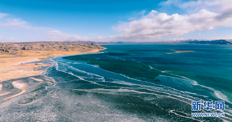 航拍:黃河源頭冬格措納湖 冰雪消融展風(fēng)姿