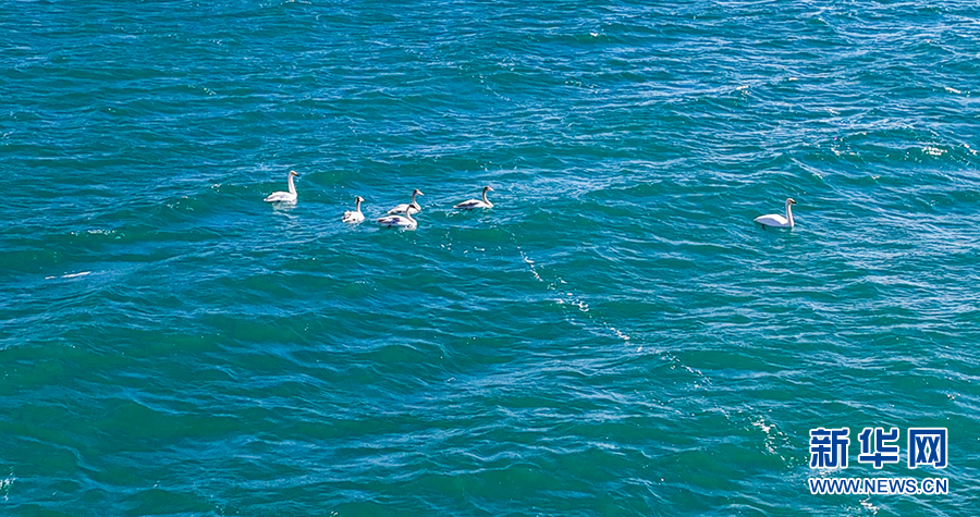 一群大天鵝在湖面上游弋,怡然自得。新華網(wǎng) 李友崇 攝