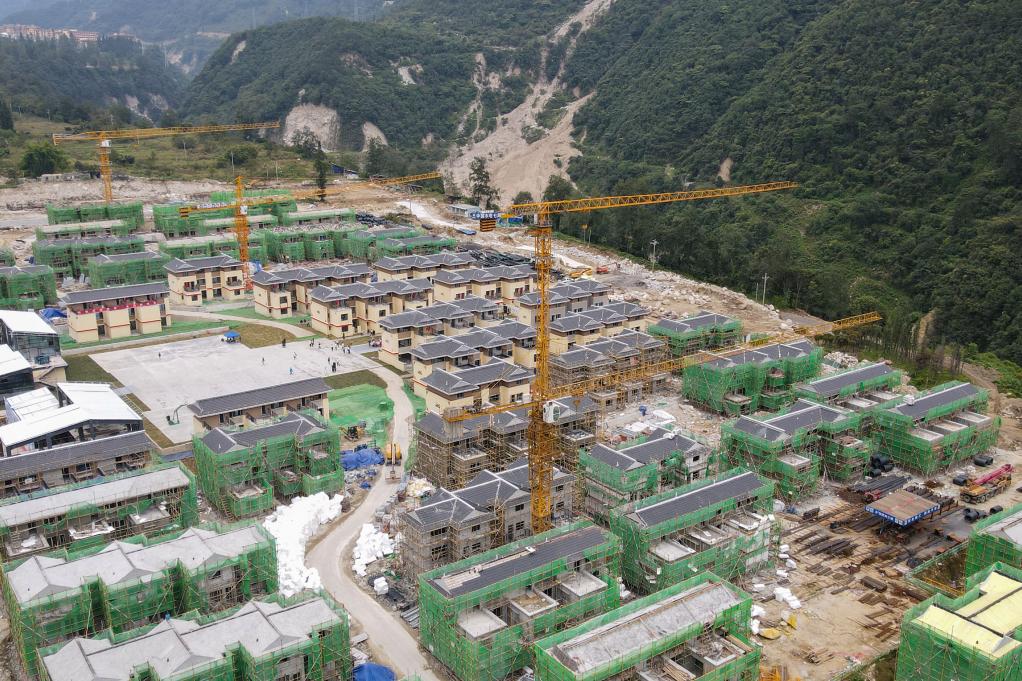 9月4日,四川甘孜州瀘定縣德威鎮奎武安置點,房屋重建項目熱火朝天。中新社記者 劉忠俊 攝