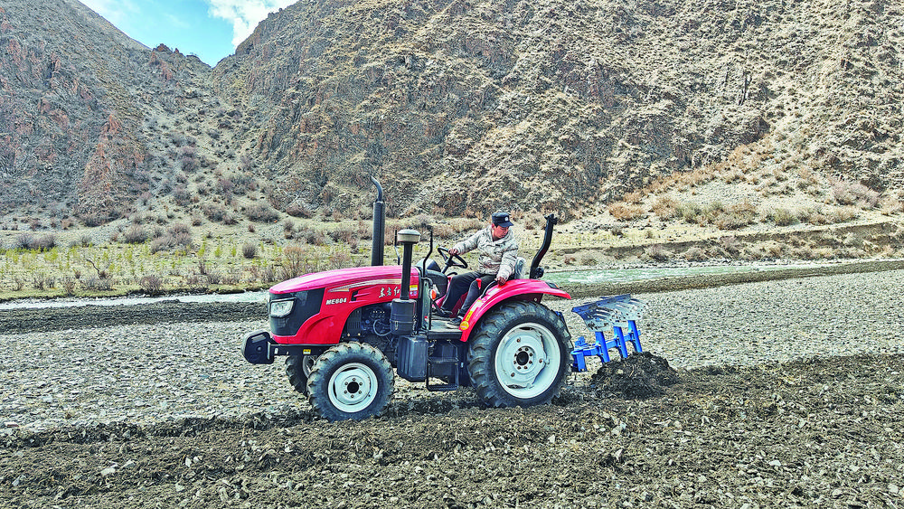 進(jìn)村時還在飄雪的結(jié)拉村,下午放晴了。跟隨駐村工作隊的腳步,我們來到結(jié)拉村的春耕現(xiàn)場,三輛拖拉機(jī)正在有序犁地,已經(jīng)犁過的地里,大家在有序地撒種。“群里說今天開始春耕了,我正好有時間就過來了,我們?nèi)膫€人輪流開,今天得犁30多畝地。”說著話,鬧布達(dá)杰的同伴接過了他的車?yán)^續(xù)作業(yè)。“村子里的青壯年基本都會開,誰有時間誰就過來。種地時,大家都不會偷懶,四五天時間,村子里的1500多畝地也就種完了。”鬧布達(dá)杰說。