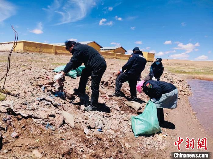 圖為長江源村生態管護員巡護時撿拾垃圾。青海省海西州格爾木市委組織部供圖