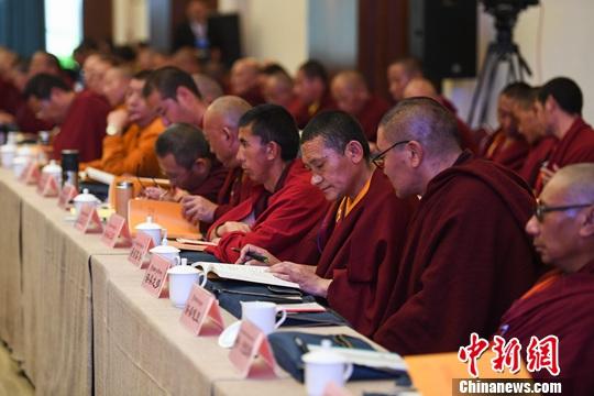 9月10日,中國佛教協會西藏分會第四屆藏傳佛教教義闡釋論壇暨堅持藏傳佛教中國化方向研討會在日喀則市舉行。論壇圍繞“修行在于利眾”主題,130名高僧大德撰寫了134篇闡釋論文,20位高僧大德在論壇上作了闡釋演講。中新社記者 何蓬磊 攝
