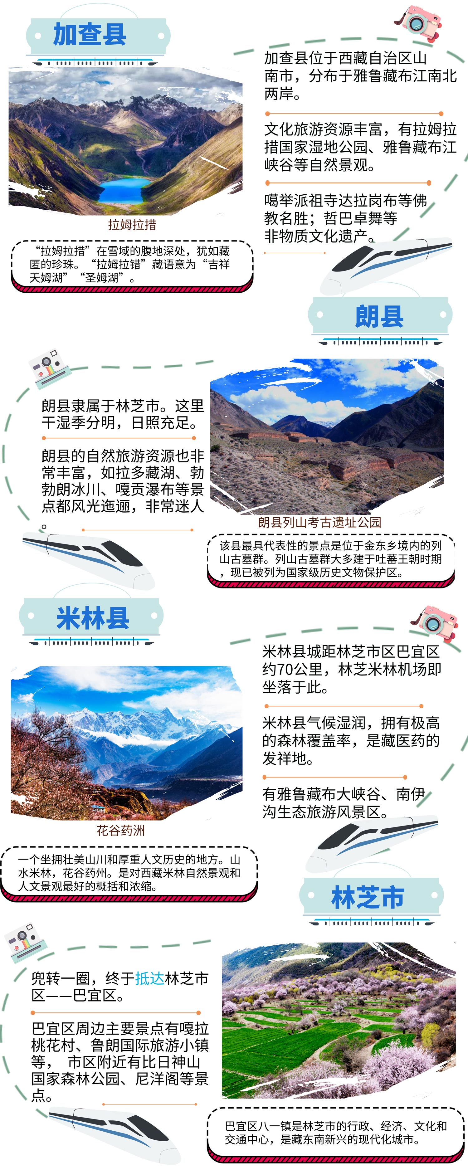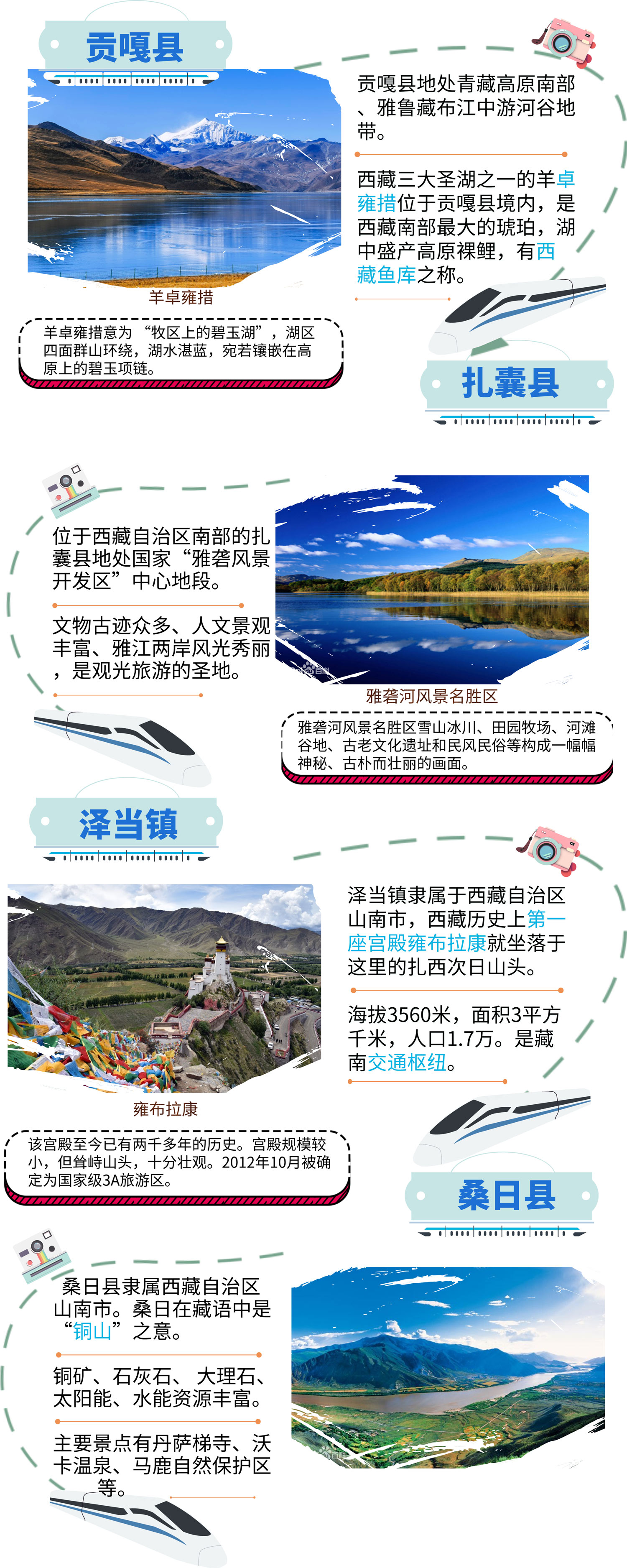 川藏鐵路拉薩至林芝段線路,沿途跨過雅魯藏布江,向東經過貢嘎、扎囊、桑日、加查、朗縣、米林至林芝,一路都是美景。