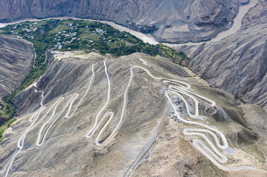 通向西藏昌都市左貢縣怒江峽谷沿岸東壩鄉(xiāng)的公路(2020年9月13日攝,無人機(jī)照片)。新華社記者 普布扎西 攝