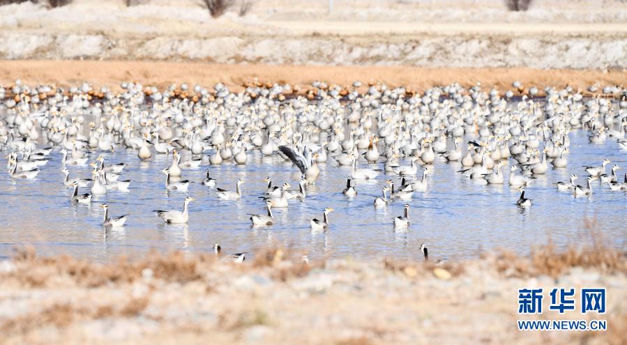 斑頭雁在拉薩市林周縣境內的河道休憩(2020年11月20日攝)。新華社記者 晉美多吉 攝