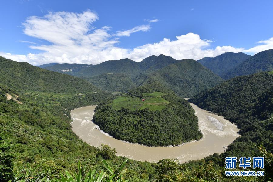 這是西藏林芝市墨脫縣境內的雅魯藏布江果果塘大拐彎(2020年8月31日攝)。新華社記者 覺果 攝