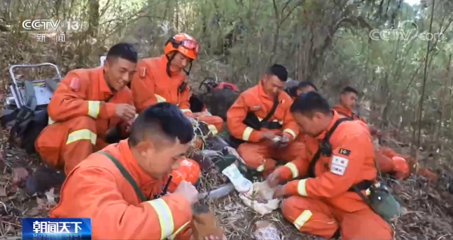 在林子里穿梭6個(gè)小時(shí)后,隊(duì)員們在半山腰的叢林里,開始一天的“正餐”,這也是他們一天中難得的休閑時(shí)光。