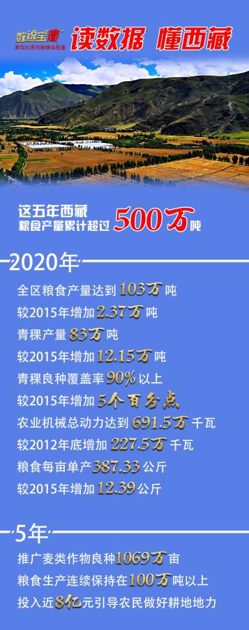 糧食豐,百姓安。記者從西藏自治區農業農村廳了解到,2020年全區糧食產量達到103萬噸,連續6年保持在100萬噸以上,其中“十三五”期間累計產糧521.99萬噸。