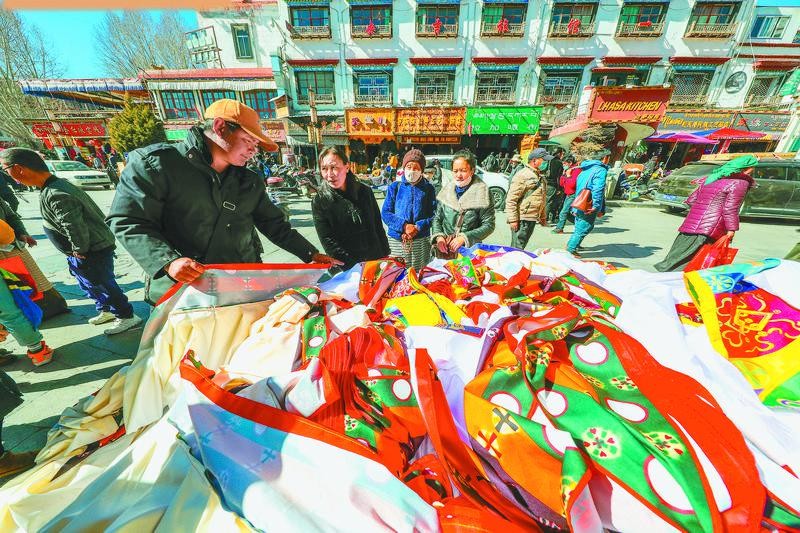 街頭巷尾張燈結彩,裝飾一新;商場超市人頭攢動,商品走俏。貼上“福”字窗花,備好藏式春聯,“就地過年”年味濃濃;落實疫情防控,守護出行安全,回家路上暖意十足。從城市到鄉村,從線下到線上,笑盈盈的面龐、沉甸甸的收獲,承載著人民群眾的幸福與喜悅,折射出美好生活的蒸蒸日上。(倫珠次仁 洛?!±詈P恰∮浾摺〈瓮∨硕唷〈稳势酱搿√票蟆÷迳!〉ぴ鋈号唷「裆<馈z)