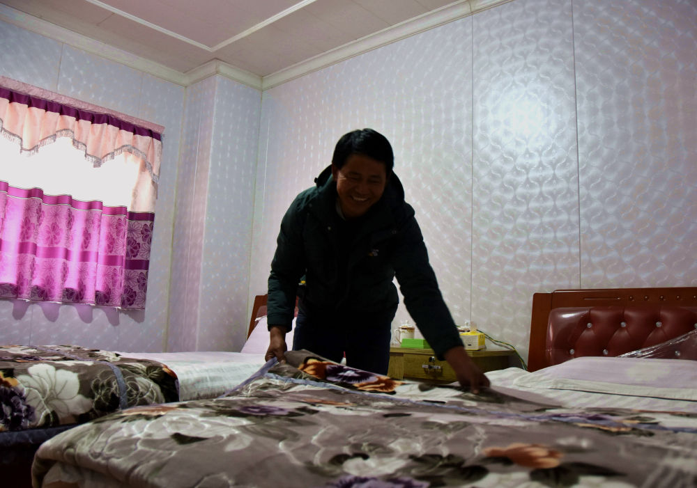下午四五點,走進村民旺青家,一家人正在吃飯。他們是2019年從隆子縣熱榮鄉搬遷而來的,夫妻倆整天都在忙家庭旅館裝修的事。“一直忙到這個點,才吃午飯。夏天游客多,客房供不應求,趁著快過春節和藏歷新年了,客人少了,趕緊對客房和餐館進行改造升級。”旺青說,“夏天我在外跑運輸,妻子在家經營客棧,家庭年收入超過10萬元,親戚朋友都很羨慕。我計劃再攢點錢買輛載貨量更大的卡車。”