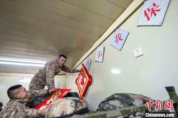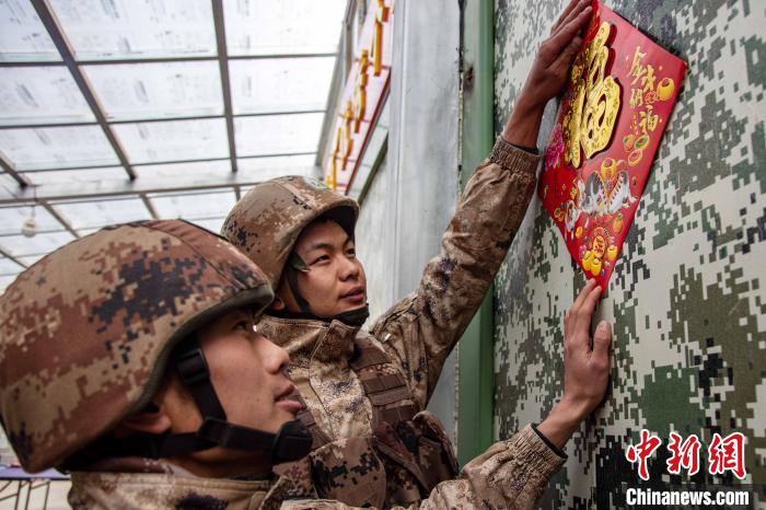 執勤點上的官兵們,用“福”字、中國結將保溫方艙精心點綴裝飾,把祝福和期許默默留在心間。“一家不圓,萬家團圓。”馬雪建是官兵中唯一的零零后戰士,他表示:“一身戎裝接過送來的‘福’字,便是扛下了肩上的使命與責任,戰位上的新年就是邊關軍人的守望。”