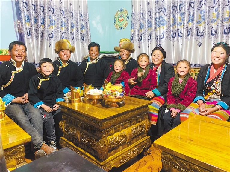 圖為江孜縣努康村石達(dá)一家歡聚一堂,拍攝全家福以作留念。扎西頓珠 攝