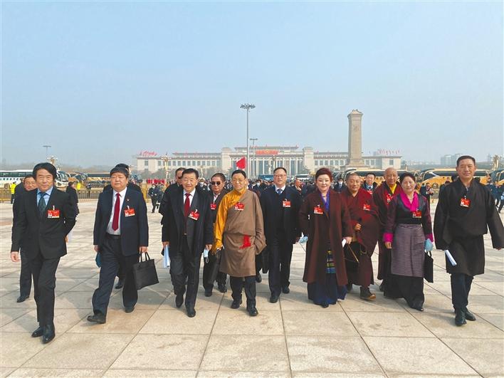 圖為西藏全國(guó)政協(xié)委員步入會(huì)場(chǎng)。記者 李洲 特約記者 旦增赤列 攝