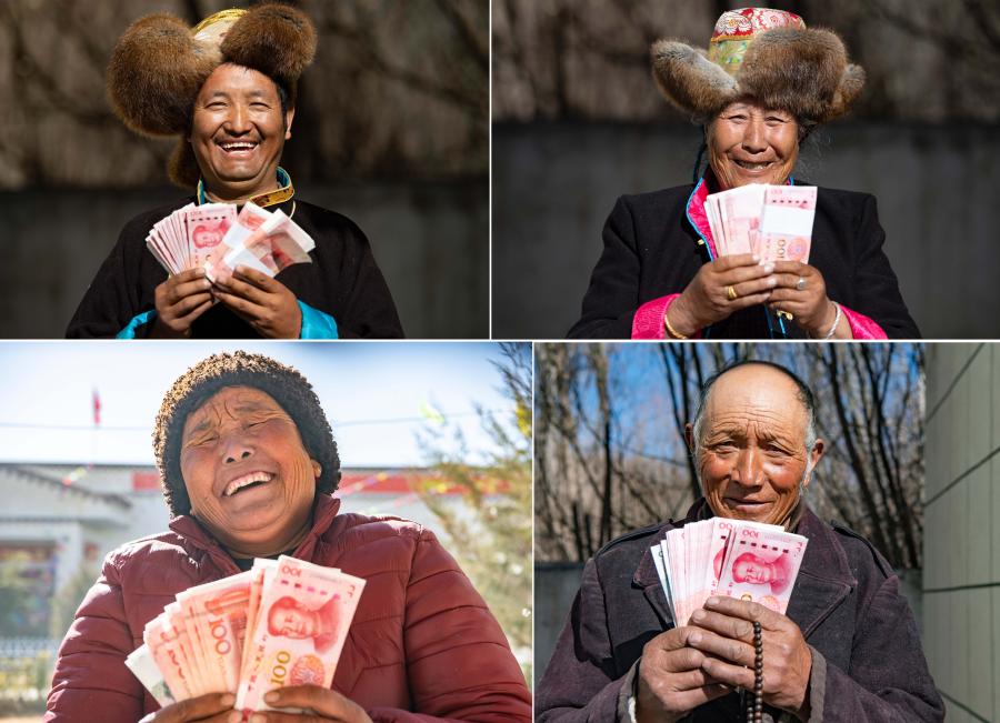 2月9日,領到分紅的克松社區居民興高采烈。(新華社記者普布扎西攝)
