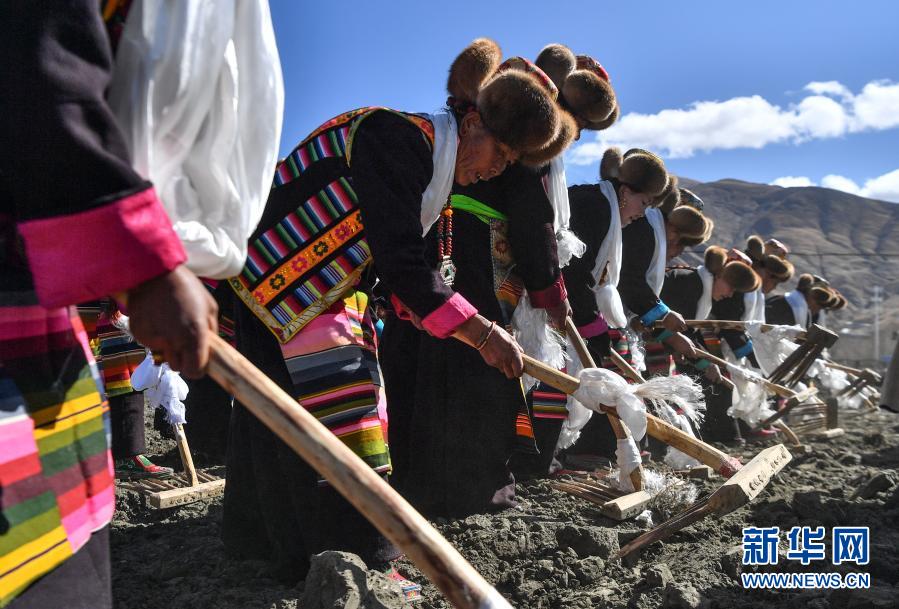 身著盛裝的西藏山南市乃東區克松社區居民在進行春耕儀式(3月16日攝)。新華社記者 晉美多吉 攝