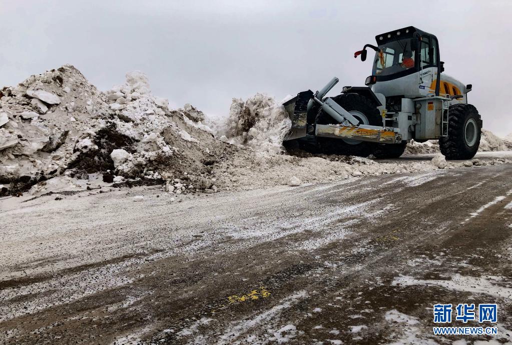 在國道109線K3378路段,安多公路養(yǎng)護段投入大型機械清除冰雪(2019年2月16日攝)。新華社發(fā)(邊巴央吉 攝)