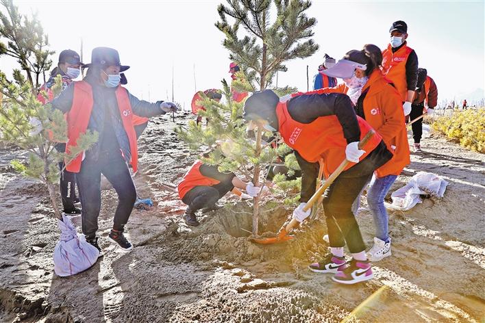圖為山南市干部職工在雅江河谷開展植樹造林活動。