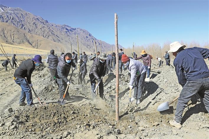 圖為山南市瓊結縣干部群眾開展植樹造林活動。