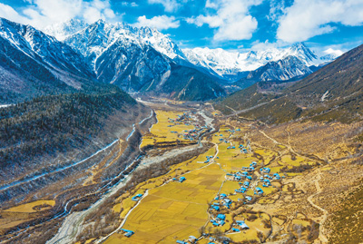 巴依村位于西藏自治區林芝市察隅縣的阿扎冰川腳下,村子周邊的森林與冰川共同組成“綠海冰川”,冰川融水穿村而過,藏式小村與山谷溪流構成了一幅和諧的人居圖畫。近年來,巴依村依托阿扎冰川獨特的自然景觀,發展特色旅游產業,鄉村人居條件得到改善,居民年收入提高到了1.1萬元,村黨支部書記邊巴達吉說:“從脫貧攻堅到鄉村振興,村子將充分發揮自然優勢,綠水青山就是金山銀山。”