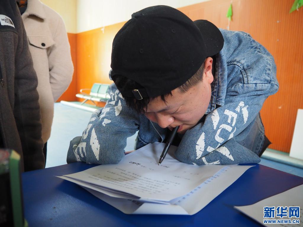 11日下午,位于西藏拉薩市的賽馬場正在舉行一場殘疾人創業滾動資金發放儀式。岳曉天熟練地用嘴含著筆,在資金發放協議書上簽上了自己的名字,字跡美觀工整,絲毫看不出是用嘴含著筆寫的。