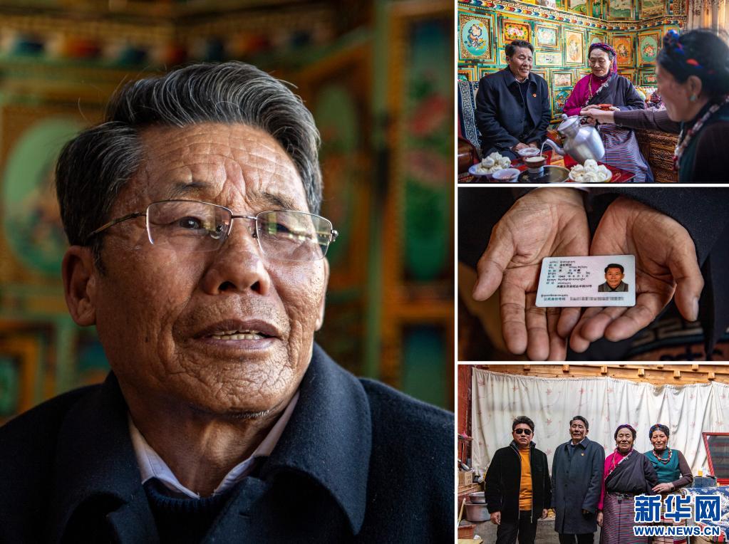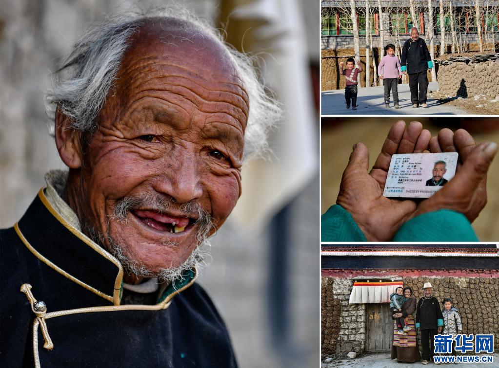 這是一張拼版照片,左圖為索朗楊佩的肖像;右上圖為索朗楊佩(左)和孩子一起玩耍;右中圖為索朗楊佩的身份證;右下圖為索朗楊佩(右)和老伴兒卓嘎在米林縣單嘎努覺村的家中留影(照片均為3月30日新華社記者孫瑞博攝)。新華社發