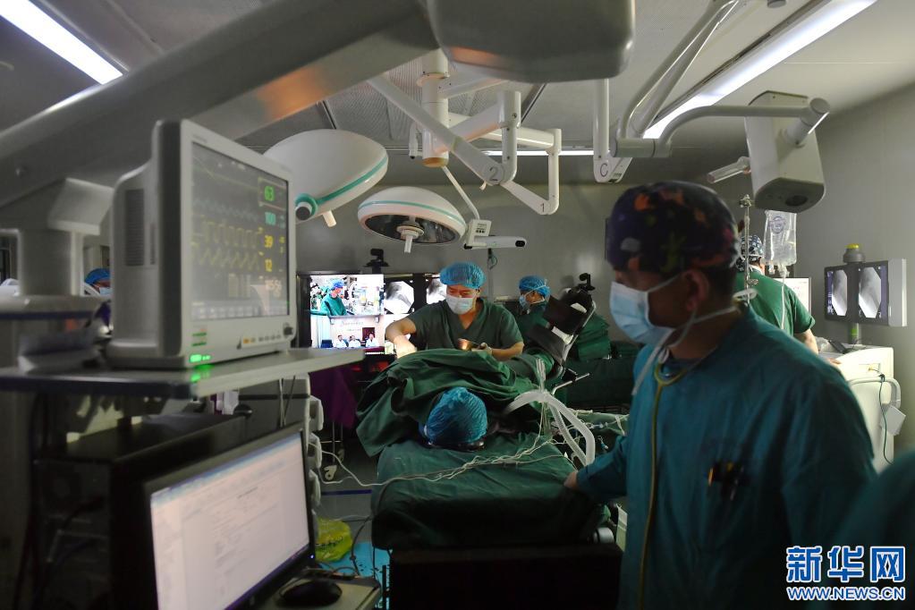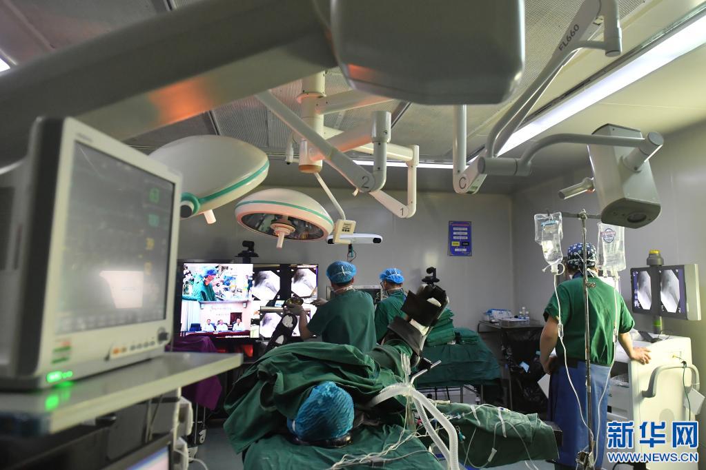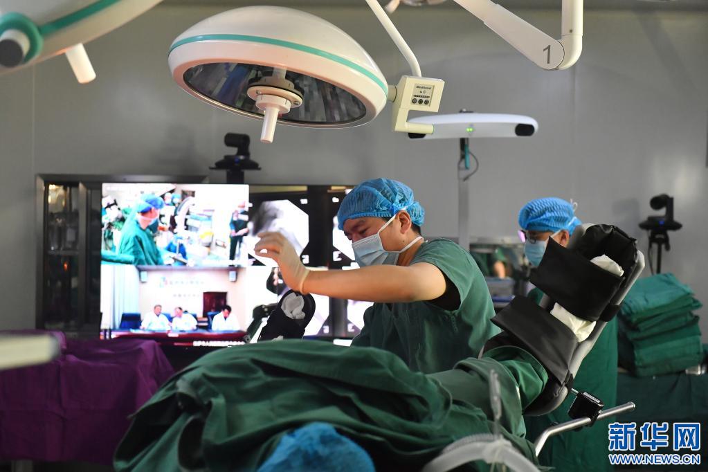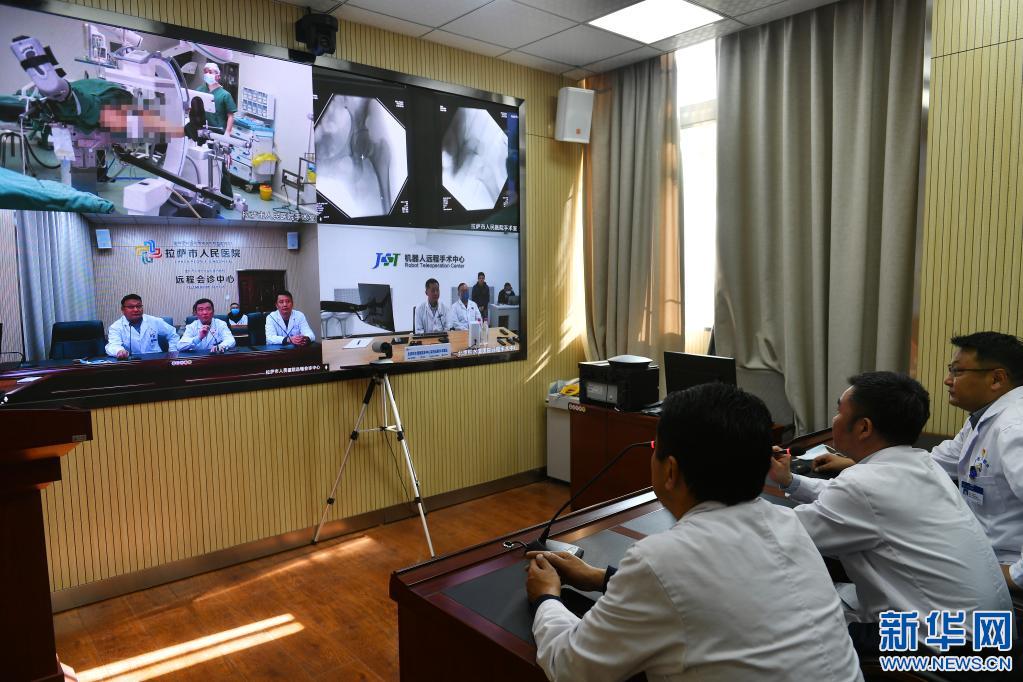 4月19日,拉薩市人民醫(yī)院骨科醫(yī)生在北京積水潭醫(yī)院專家遠程指導下使用骨科機器人開展骨科手術。新華社記者 孫瑞博 攝